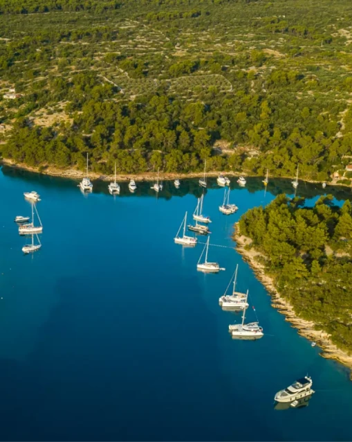 Sail toward the stunning Pakleni Islands for a swim in turquoise bays, then continue to Palmizana marina for a serene evening surrounded by pine forests and sea views.